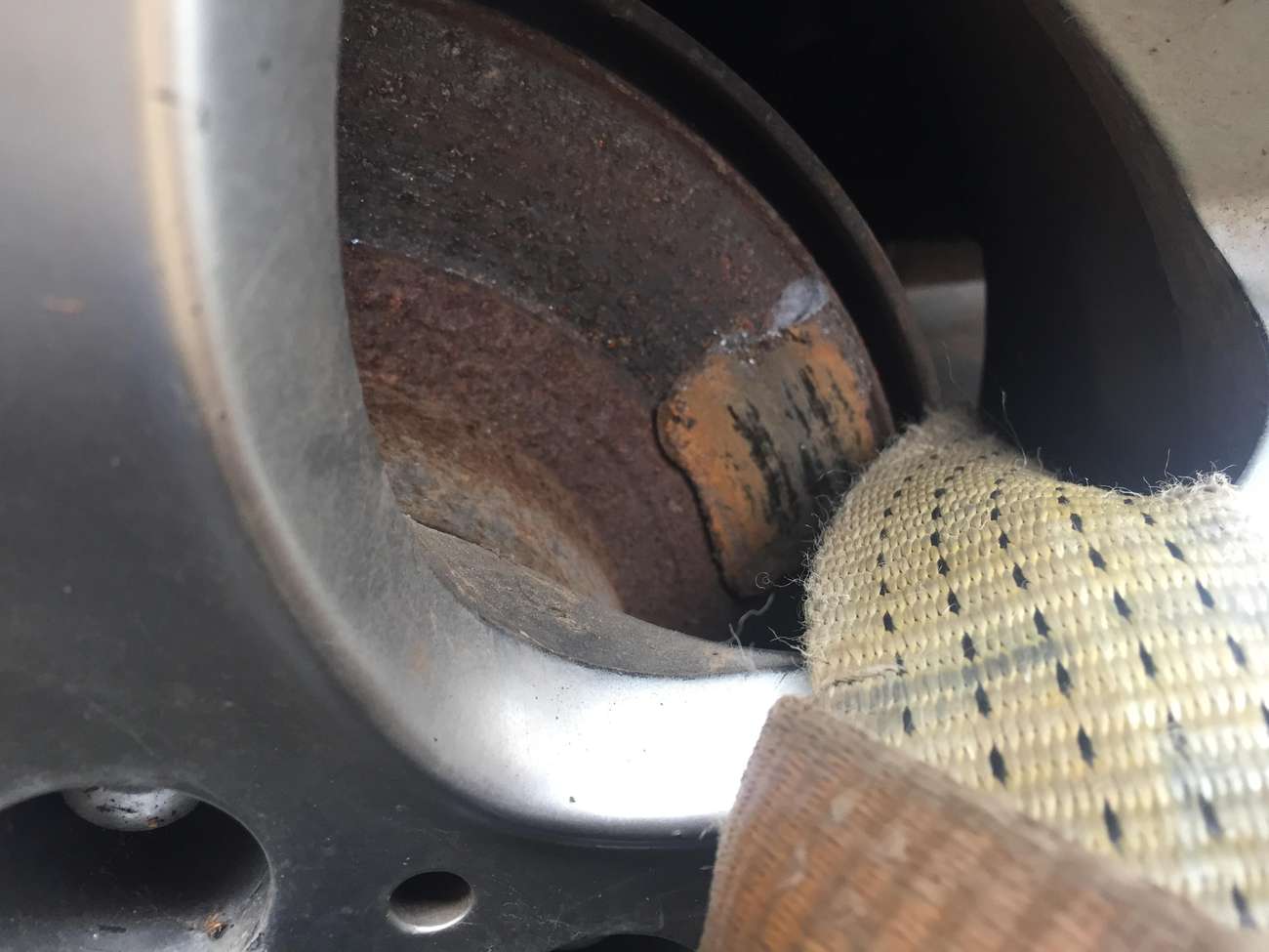 Brzdová destička se za ty roky stihla stát součástí kotouče...