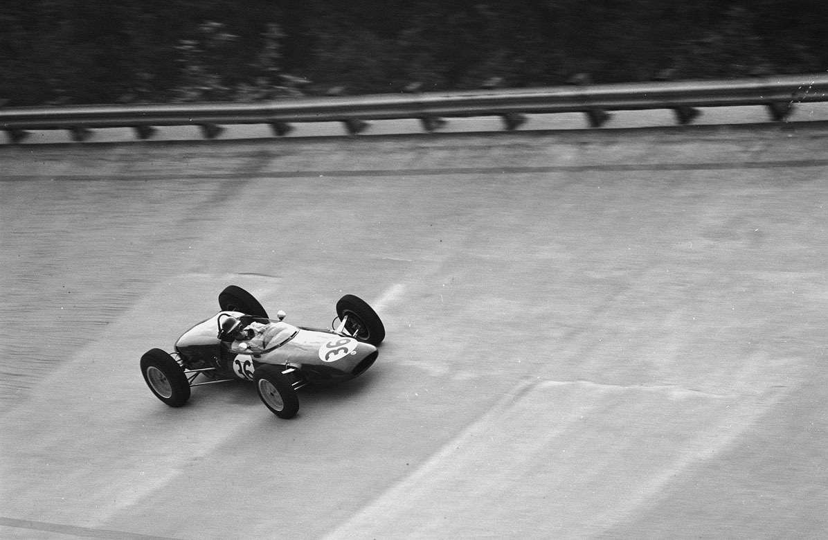 Jim Clark v klopené zatáčce, Lotus 21, Monza 1961.