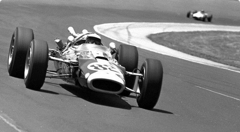 Clarkův asymetrický Lotus 38 během Indianapolis 500, 1965.
