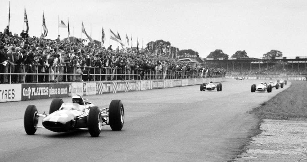 Jim Clark s Lotusem 33 během GP Británie, 1965.
