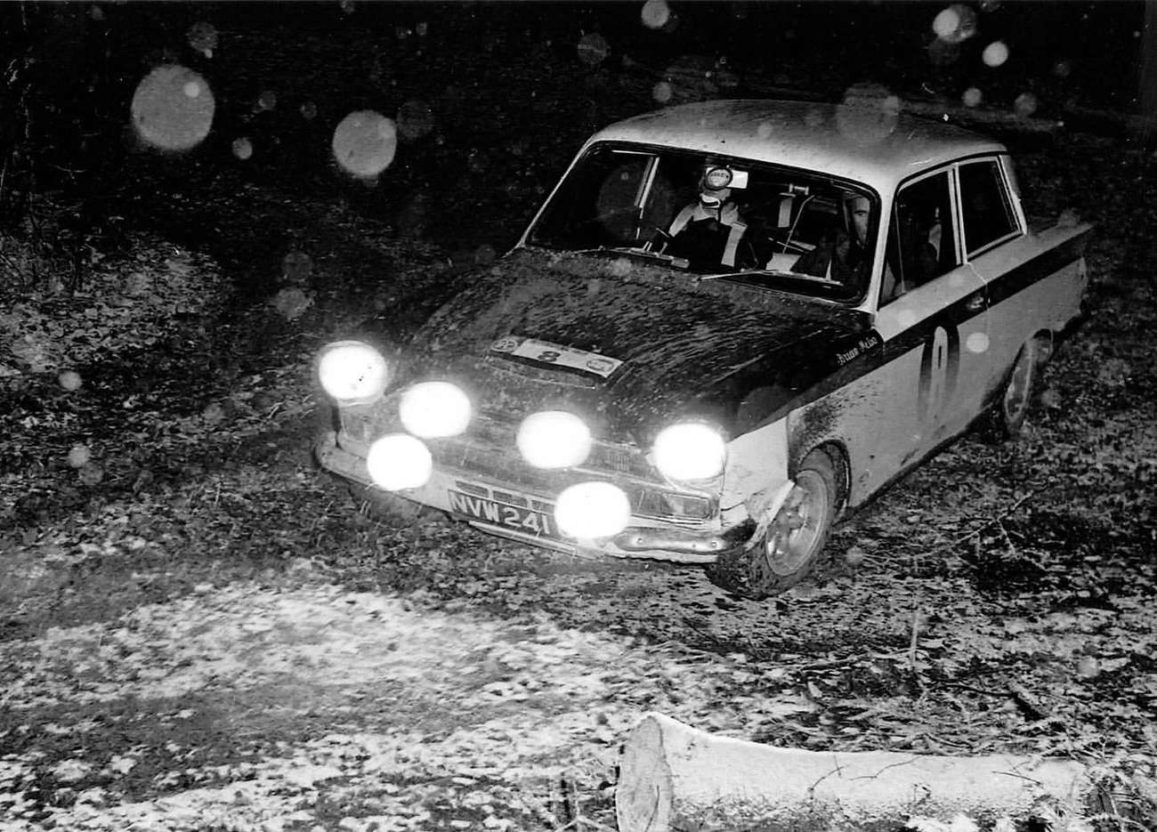 Clark s Lotusem-Cortina Mk1 během RAC Rally, 1966.