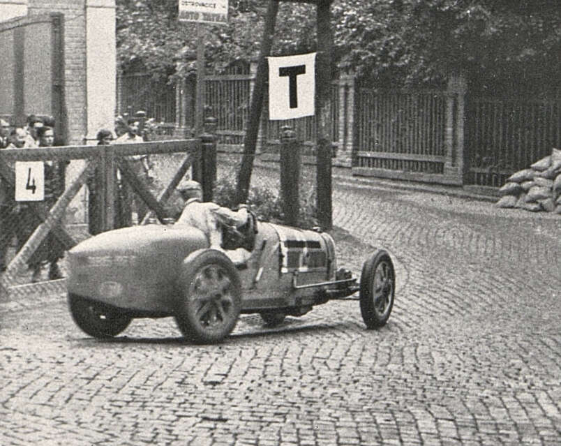 Louis Chiron projíždí zatáčku v Pisárkách a míří za vítězstvím, 1932.