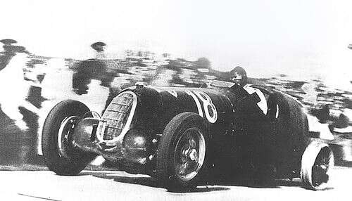 Legendární Tazio Nuvolari v Brně nikdy nezvítězil, v roce 1937 ho potrápil defekt. Alfa Romeo 12C-36, 1937.