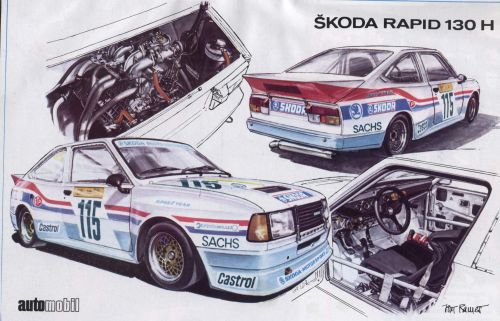Na závěr se ještě musíme podívat na úpravu Rapidu, která byla vyvinuta přímo pro zelené peklo – Nurburgring. Ke konci 80.let se totiž na Nordschleife pořádal pohár pro nehomologované závodní vozy, a tak mohla Škoda využít tuto kategorii pro testování několika komponentů pro Favorita a k ověření vlastních schopností. Vznikl vůz, který byl schopný po okruhu letět rychlostí 260 km/h a jeho označení bylo Škoda Rapid 130 R/H. Jeho krásu a hlavně zvuk už posuďte sami – VIDEO