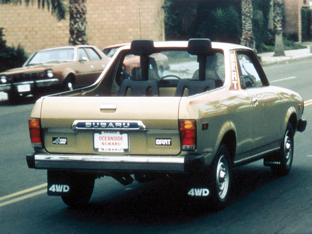 Malý pick-up Brat se proslavil nejen sebevražednými sedadly na korbě, která trousila pasažéry po příkopách. Náklaďáček se inspiroval u svalnatých kolegů, jako byl Chevrolet El Camino nebo Ford Ranchero, narozdíl od nich však byl mnohem slabší, levnější, měl o dvě poháněná kola navíc a pro účel nenáročného pracanta byl tím pádem daleko vhodnější. Brat se stal oblíbeným sluhou farmářů a drobných živnostníků pro svou spolehlivost a odolnost a vydržel ve výrobě téměř 10 let. Na přelomu milénií si Subaru na nízký pick-up vzpomnělo a ustřihnutím střechy Outbacku vznikl model Baja. Oblíbenosti Bratu však již nedosáhl.