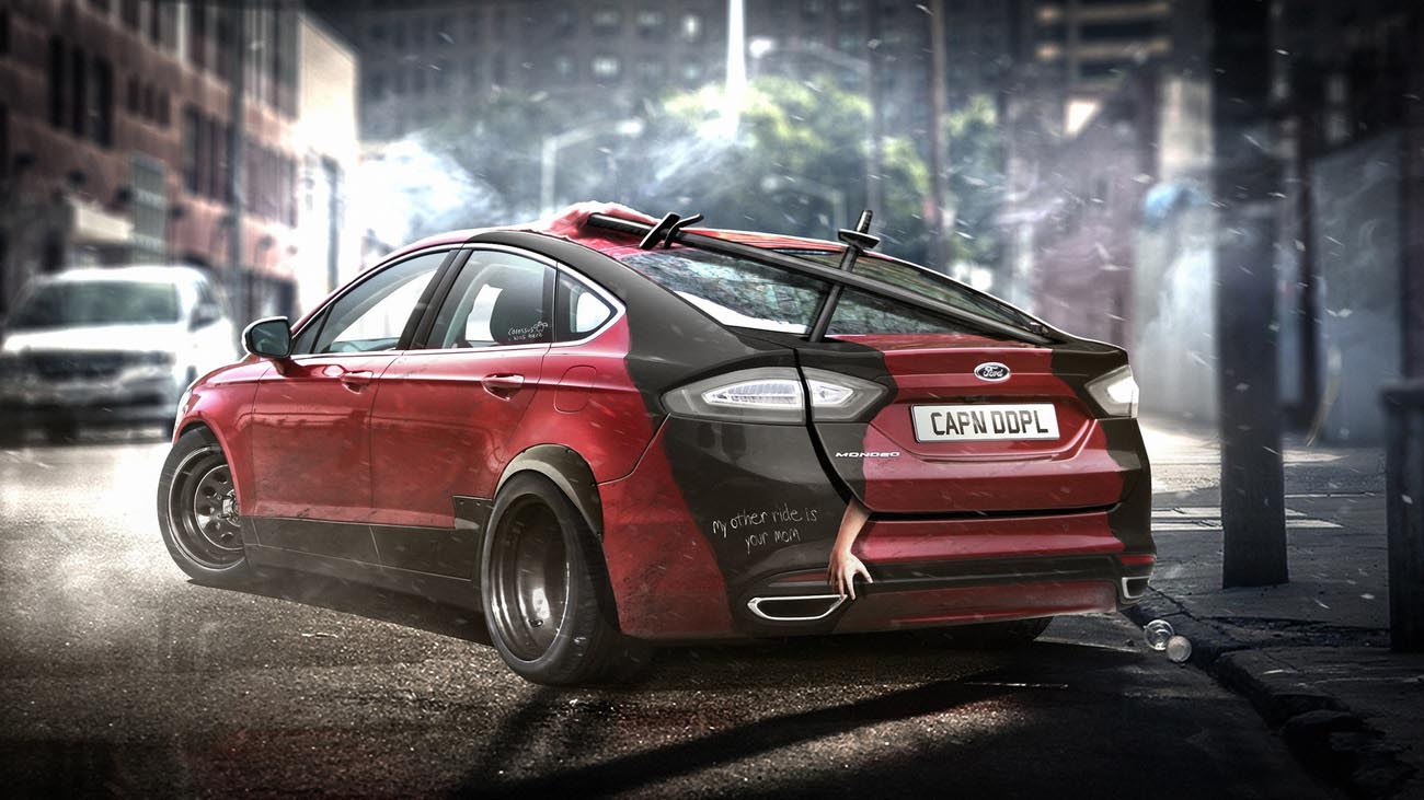 Není to dlouho, co po Deadpoolovi neštěkl ani pes, a teď tady máme všemi milovaného, ironického hrdinu současnosti. I jeho vůz tak musí oplývat trochou ironie a k tomu se Mondeo s katanami na zadním okně, mrtvolou v kufru a nápisem naznačujícím kopulaci s něčí matkou dokonale hodí.