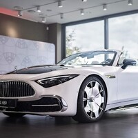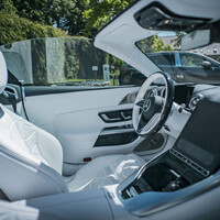 První vůz, se kterým jsme se svezli, byl zároveň tím nejnovějším. Dvoumístný roadster SL je nabízen jako sportovnější Mercedes-AMG SL nebo právě Mercedes-Maybach SL, zaměřený na pohodovější cestování s větrem ve vlasech. Oproti verzi AMG má zcela odlišně nastavený podvozek, tišší výfuk a více tlumícího materiálu. Liší se i vzhledem, kdy verze Maybach má mnohem více chromu, specifický nárazník s logy Maybach v nasávacích otvorech a dokonce i jiné přední světlomety. Navíc má i specifickou střechu a kapotu se speciálním lakováním a chromovanou linkou.