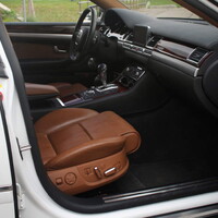 Podobně v interiéru je to na první pohled jen další velká německá limuzína. To slovo jen tu však trochu uráží, protože vnitřek S8 je vážně pěkný. Nabízí decentní design, hodnotné materiály i solidní zpracování. Návdavkem přidává propracované detaily jako třeba elektricky vyklápěný displej multimediálního systému, dedikovanou odkládací poličku na platební karty nebo čtečku otisků prstů, po jejíž použití se řidičova sedačka, volant i multimédia správně nastaví.