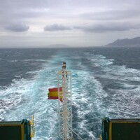 Nalodění na trajekt na Gibraltaru bylo hračkou, ale jízda lodí, kdy bylo moře ještě rozbouřené a vítr o sobě chtěl dát co nejvíce vědět, byl rozhodně zážitek. Záď lodi, když máte relativně volné dioptrické brýle s velkou plochou skoro alá hipster jsem naštěstí včas chytl do náruče, jinak bych o ně přišel. Nicméně zde se musím omluvit Range Roveru, neboť náklony lodi byly poněkud dramatičtější.