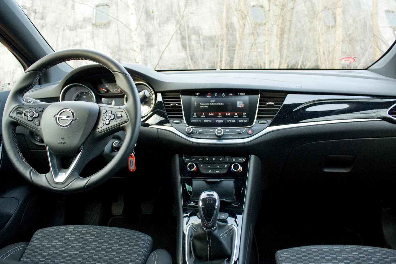 Když se na Astru K poprvé podíváte zvenku, začnete (stejně jako u menší Corsy) trochu pochybovat o tvrzení automobilky, že jde o zcela nové auto. Celkové tvary karoserie i jejích ‚pevných bodů‘, jako jsou otvory skel, umístění sloupků a podobně, naznačují více než náhodnou podobnost s předchůdcem. Ale jakmile se posadíte dovnitř, ocitnete se rázem ve zcela jiném světě. Tady staré Jéčko připomínají snad jen budíky. Zbytek kabiny je modernější, uhlazenější a působí mnohem solidnějším, kvalitnějším dojmem než dříve. K asi největší změně došlo na středovém panelu, kde zmizela bezútěšná poušť tlačítek a byla nahrazena elegantním, čistým infotainmentem s dotykovým displejem.