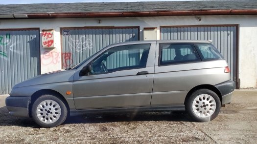 Cuore sportivo. Může být na závody něco vhodnějšího než Alfa Romeo? Tohle auto má soutěžení a adrenalin vepsané v genetickém kódu. I když je fakt, že v historii AR bychom našli vhodnější závodní stroje, než jakým je třídvéřový hatchback stojící na platformě Fiatu Tipo, rozhodně nemohu stočtyřicetpětce upřít jistou dávku přitažlivosti. Možná za to může zajímavý design. Přední část jasně dokazuje příslušnost k milánské automobilce, zadní část zase boduje ‚neviditelným‘ C-sloupkem. Mimochodem, víte, že na designu AR145 se podílel i jistý americký designér, jehož jméno se nesmí vyslovit v okolí Mnichova? No nic, přejděme radši ke konkrétní Alfě. Ve slušné společnosti muž zásadně netipuje věk dámy, tudíž vám nepovím, kolik je téhle šarmantní Italce let. Pod koly jí však uběhlo 218 tisíc kilometrů asfaltu (aspoň dle budíků). Přední kolečka roztáčí klasická Twin Spark 1.4. Jestli je to dobře, nebo špatně, to už nechám na vás. Společnost na cestách vám bude dělat 103 poníků, což je poměrně úctyhodné číslo na takovou malorážku. Dle majitele netrpí daná 145 žádnými většími problémy, snad až na ten rozbitý přední ret, nic co by nespravilo pár stehů. Nebo svářečka na plasty. Už jste někdy vlastnili Alfu? Ne? Nejvyšší čas to napravit, za 15 papírů to není vůbec špatná nabídka. Jen před PlechCupem vyhoďte ten zesilovač, akorát zbytečně zvyšuje hmotnost a tím snižuje vaši šanci na úspěch.