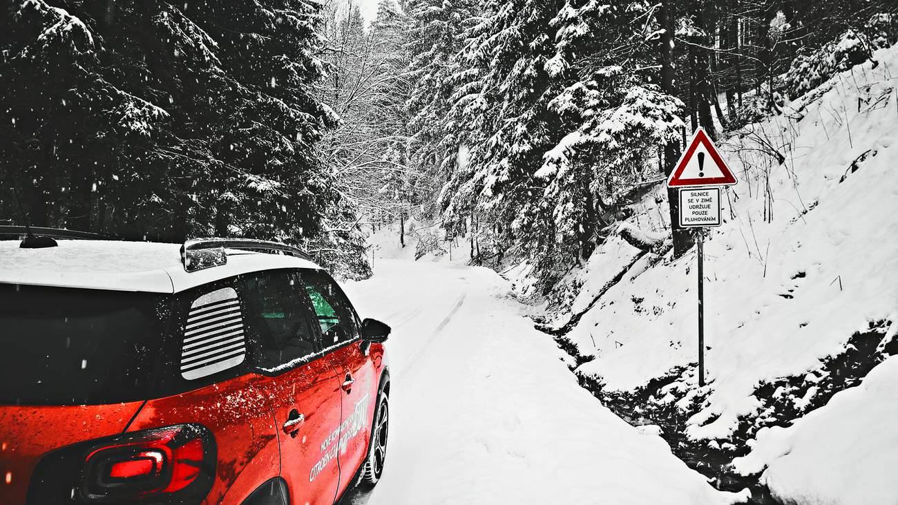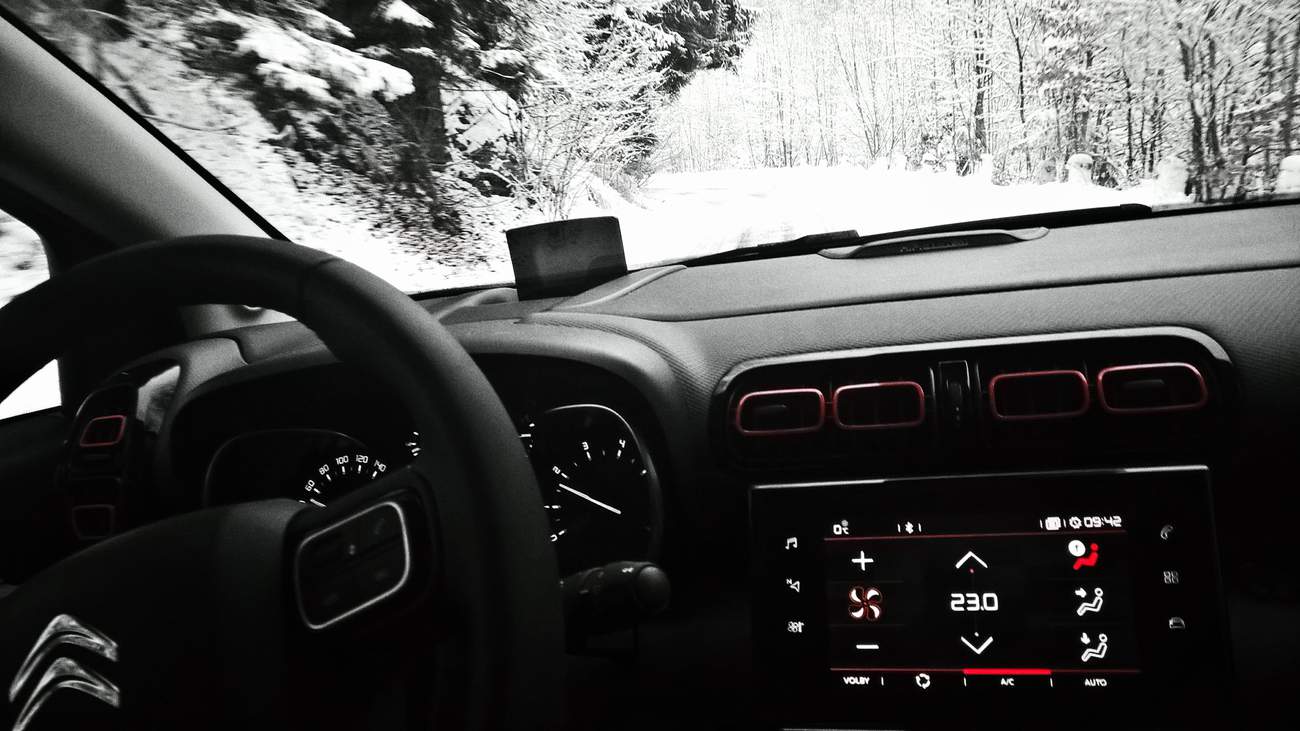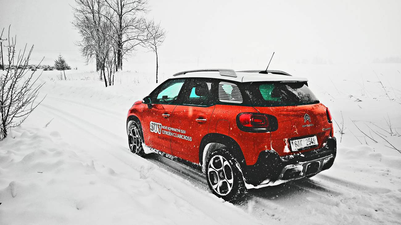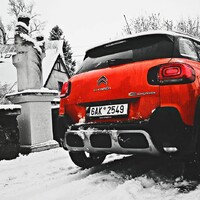 Abych dokázal pravdivost své nové teorie, vydal jsem se s C3 AirCross do království sněhu a ledu, které právě panovalo v Orlických horách. Jak jsem začal stoupat serpentinou z Kvasin nahoru, začalo přituhovat. Sněhu bylo stále víc, až pokryl silnici celou. A potom ji pokryl do výšky několika centimetrů. Ale já se nebojím, mám statečný crossover. Přepnul jsem režim čehosi na ‘smyk ve vánici’ a vyrazil vzhůru. A ono to funguje! Automobil, ač není vybaven žádným poctivým železem ve formě pohonu všech kol či uzávěrek, se sune vpřed. Že vás to nepřekvapuje? No jistě, na zasněženou silnici přeci nepotřebujete žádné SUV či offroad. Úplně stejně dobře se AirCross valí sněhem i na režim ‘Mexiko’ (nebo co že to ten obrázek s kaktusem má být) a posléze i na základní silniční režim. Skutečně není ani na solidně zasněženou silnici potřeba nic víc, než slušné zimní obutí. Lehce vyšší světlá výška se může hodit v městské džungli, kde si nepoškrábete nárazník o obrubník, všechny ostatní výdobytky SUV jsou zbytečné a v AirCrossu mi vůbec nechybí. Naopak, kdyby tu nebylo ani to točítko s kaktusy, dunami a smyky, byl bych spokojenější. Ani závěrečný úsek malou silničkou k chatě, kam už ani pluh nejezdí, nepředstavoval pro Citroën problém.