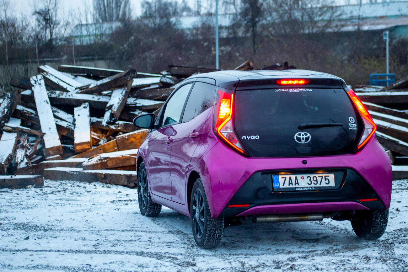 Nejmenší Toyota letos prodělala poměrně výrazný facelift, se kterým přišly dvě nové speciální edice: “závodně” laděná Selection X-Treme a stylová Selection X-Cite. A právě druhou z jmenovaných jsem dostal k otestování. Nebudu chodit kolem horké kaše – vzhled nového Ayga považuji z kolíňat za nejzdařilejší. Ostře řezané hrany a přední maska ve tvaru písmene X působí svěže a k autu se docela hodí, celý vůz se vzhledově přiblížil většímu Yarisu. X-Cite navíc přidává vkusné lakování střechy a litých patnáctek a tónovaná skla. Jasně – tahle malá městská auta vypadají vždycky tak trochu komicky, v rámci kategorie se ale designéři Toyoty rozhodně vyznamenali. Potěší i zajímavá grafika předních a zadních světel.