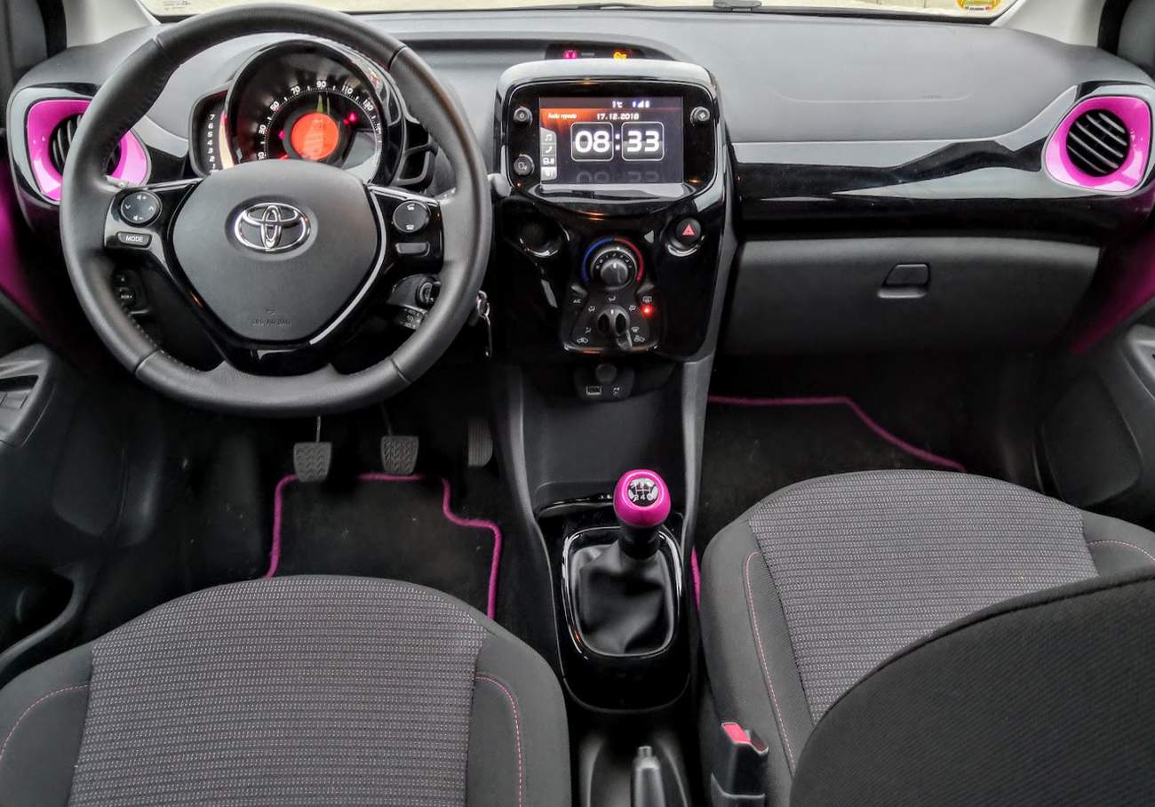 No a teď je asi na čase promluvit o “slonovi v místnosti“. Ano – Aygo X-Cite je růžové. Velmi růžové. Přiznám se, že zpočátku jsem ze zvolené barvy testovacího vozu nebyl úplně nadšený. Ne, nechci zde začínat debatu o genderových předsudcích a o tom, že “kluci mají modrou a holky růžovou“. Konec konců – i mé první auto, které jsem vlastnil po získání řidičského oprávnění mělo takříkajíc lososový nádech. I přes to všechno je ale tak nějak nasnadě, že verze X-Cite zkrátka cílí spíše na zákaznice.