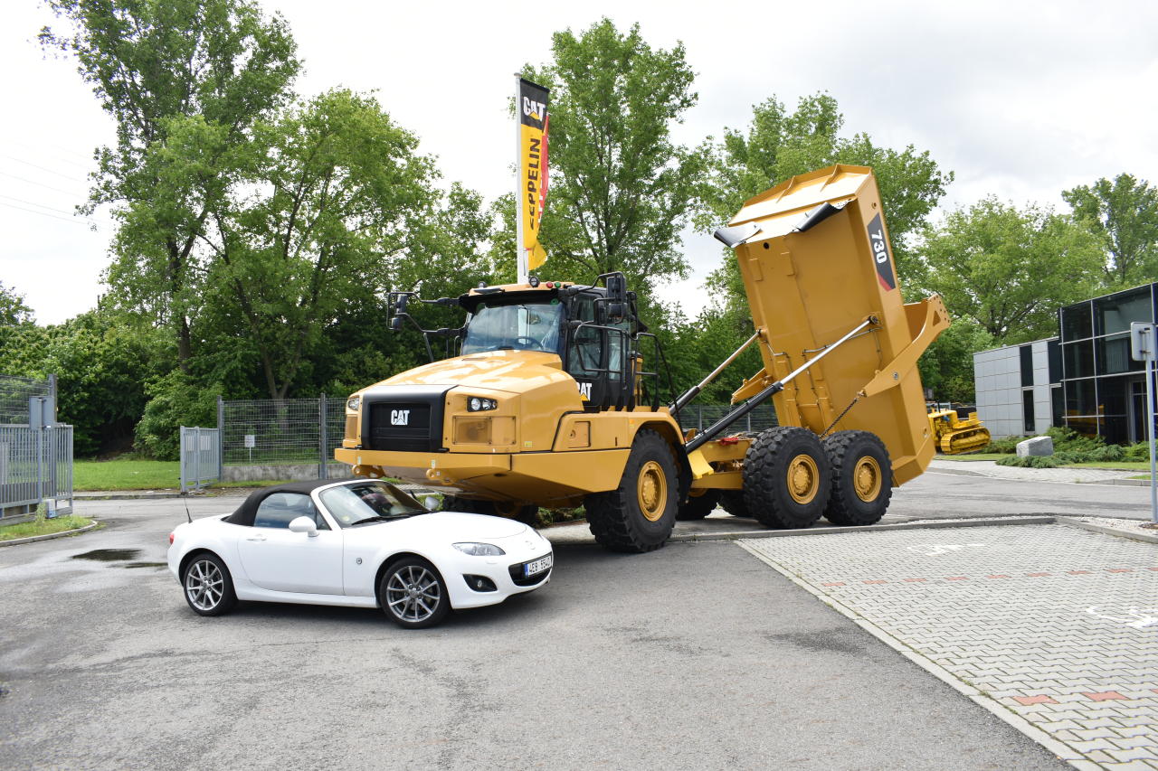 Autíčkář jako respektované motoristické médium nejen že pořádá své okruhové dny (když to zrovna vyjde) a účastní se akcí pro odbornou novinářskou veřejnost (jenom těch s chlebíčkama), ale dokonce sám podniká výpady za zajímavými tématy. Když nám napsali z Zeppelinu, jestli si nechceme prohlédnout něco z jejich portfolia, rádi jsme po takové nabídce skočili. Méně znalé čtenáře nebudu napínat, o vzducholodě nejde. Společnost Zeppelin CZ na našem trhu prodává, servisuje a financuje stroje značky Caterpillar, známé i zkráceně jako CAT. To už zní povědomě, že? Jde hlavně o bagry, nakladače a dumpery. To jsou takové ty náklaďáky, co jezdí po dolech, mají kola větší než osobní automobil a jsou žluté. No a právě šestice velkých, žlutých a úplně nových strojů na nás čekala na pobočce v Ostravě.