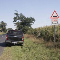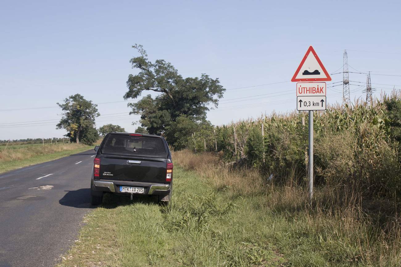 Od města Tatabanya vede cesta po malebných okreskách a poprvé se objevuje záhadný jev – úthibák. Varování před úthibákem obvykle dolpňuje výstražná značka s vykřičníkem, pokračujeme tedy obezřetně pro případ, že by ta věc chtěla zaútočit z okolních křovisek. Prozaického vysvětlení se nám dostalo až v cíli od maďarské babičky. Úthibák je prostě a jednoduše rozbitá silnice, jev ve zdejším kraji velmi rozšířený (později narážíme i na kombinaci se značkou “nerovnost vozovky”) . Pickup skáče jako rozpustilé hříbě a na velké úthibáky se rozhodně vyplatí nenajíždět velkou rychlostí, to si pak můžete dát i hlavičku o strop. Rychlost není na místě ani v zatáčkách. Těžký předek se z nich sune po tečně ven, zatímco zadek vlaje jako fangle ve větru. Také motor a šestistupňový automat preferují klidné a plynulé zacházení, na násilné vytáčení reagují podrážděným řevem. Charakter auta naštěstí k jízdě “brzda-plyn” nesvádí a pohodové brázdění krajiny působí naprosto přirozeně.