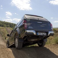 Poslední etapa trasy vede po polní cestě vymleté nedávnou průtrží mračen. Bohužel, vyprahlá zem nasála všechnu vláhu jako houba a bahna nezbylo ani maličko, trakci tak snižuje jen písčitý charakter půdy. Pro tento způsob terénu je D-Max jako stvořený. Nejedná se o hardcorové offroadové náčiní – koneckonců do každého terénu se musíte napřed dostat po silnici – přiřaditelná čtyřkolka s redukcí ale bohatě stačí pro všechny situace, do nichž se při cestování (kdy záměrně nevyhledáváte terénní výzvy) můžete dostat. Když se proplétám po polňačce mezi vinicemi, pohon předních kol si připojím spíš pro formu – pokud chci jet čistou stopu namísto rozmarného driftování od příkopu k příkopu.