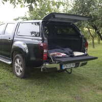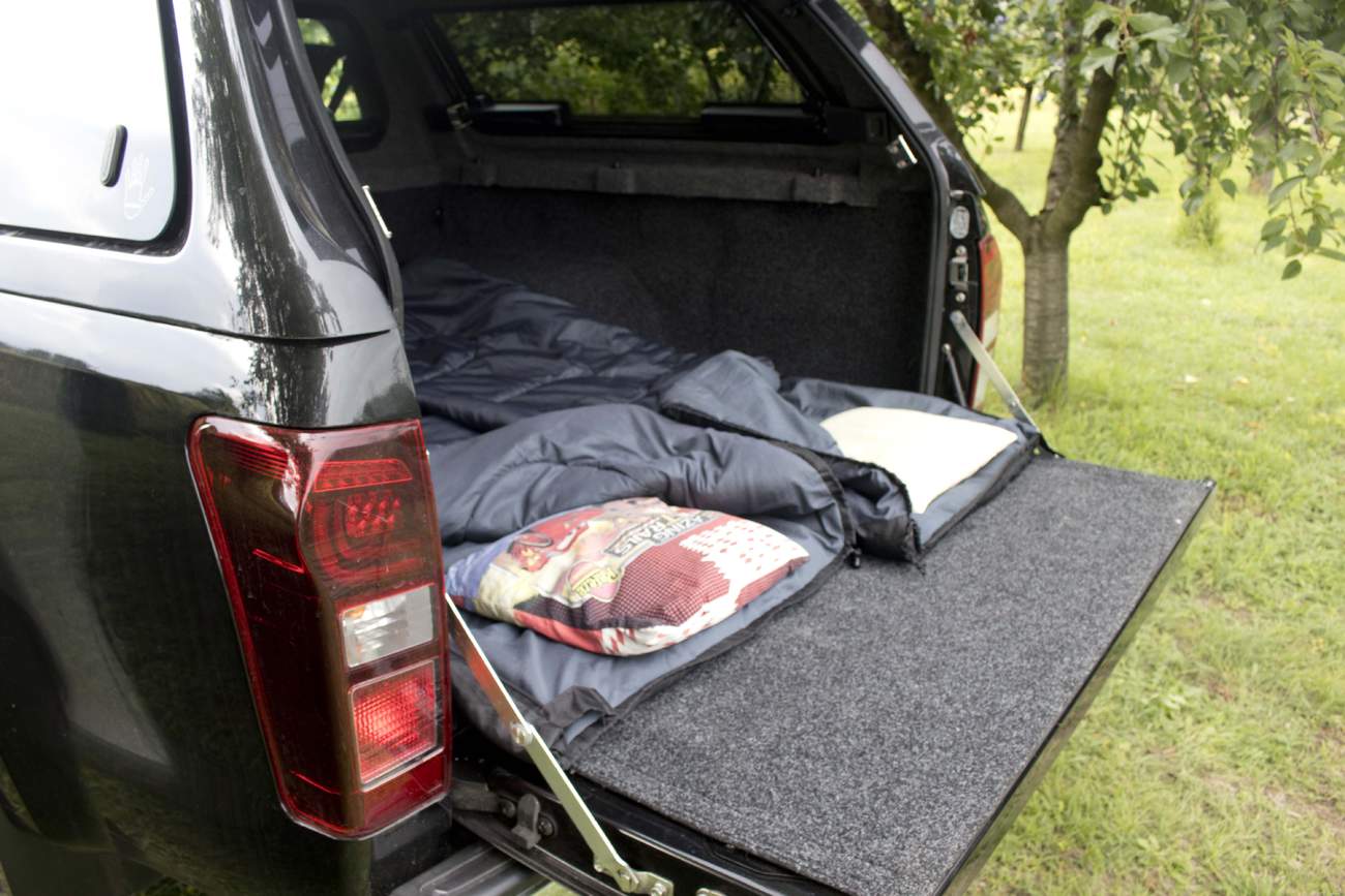 V cíli nám D-Max předvede, že kromě dopravy částečně zastane i funkci ubytovací. Pokud je příznivé počasí, na korbě se sklopeným spodním deklem se v klidu vyspí dvě osoby a leží se tu velmi pohodlně. Ze stran jste chráněni před větrem a pořád můžete koukat na hvězdy.