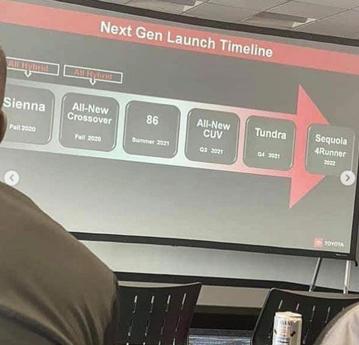 V instagramovém příspěvku, který uniklé informace zveřejnil se dozvídáme i další zajímavosti, které budou ale pravděpodobně zajímavé spíše pro zákazníky za oceánem. Ještě letos se představí nová generace MPV Sienna, přijde i nový crossover. O rok později se pak chystá uvedení malého crossoveru a omlazení pick-upu Tundra.