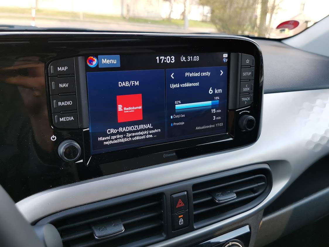 Samostatný odstavec si zaslouží infotainment. I10 je totiž první z vozů Hyundai s novou verzí palubního systému pro rok 2020, který se mi dostal do ruky. Předchozí radiomapa sice nebyla vyloženě špatná – fugnovala celkem svižně a nabídla asi všechny potřebné funkce, ale občas byla zbytečně složitá, zoufale neintuitivní a navíc vzhledově velmi zastaralá. S potěšením konstatuji, že tyto neduhy se v aktualizaci povedlo eliminovat a nový systém funguje skvěle. Navíc disponuje jednoduchými animovanými kontextovými nápovědami, které ocení především technicky méně zdatní majitelé. A ačkoli jsem se snažil, nepovedlo se mi nový systém ani jednou shodit, nebo dohnat k nějakému zasekávání. Snad jediná výtka tak směřuje k tomu, že si nelze nastavit jiné, než tmavovmodré barevné schéma. Ale to je fakt malichernost.