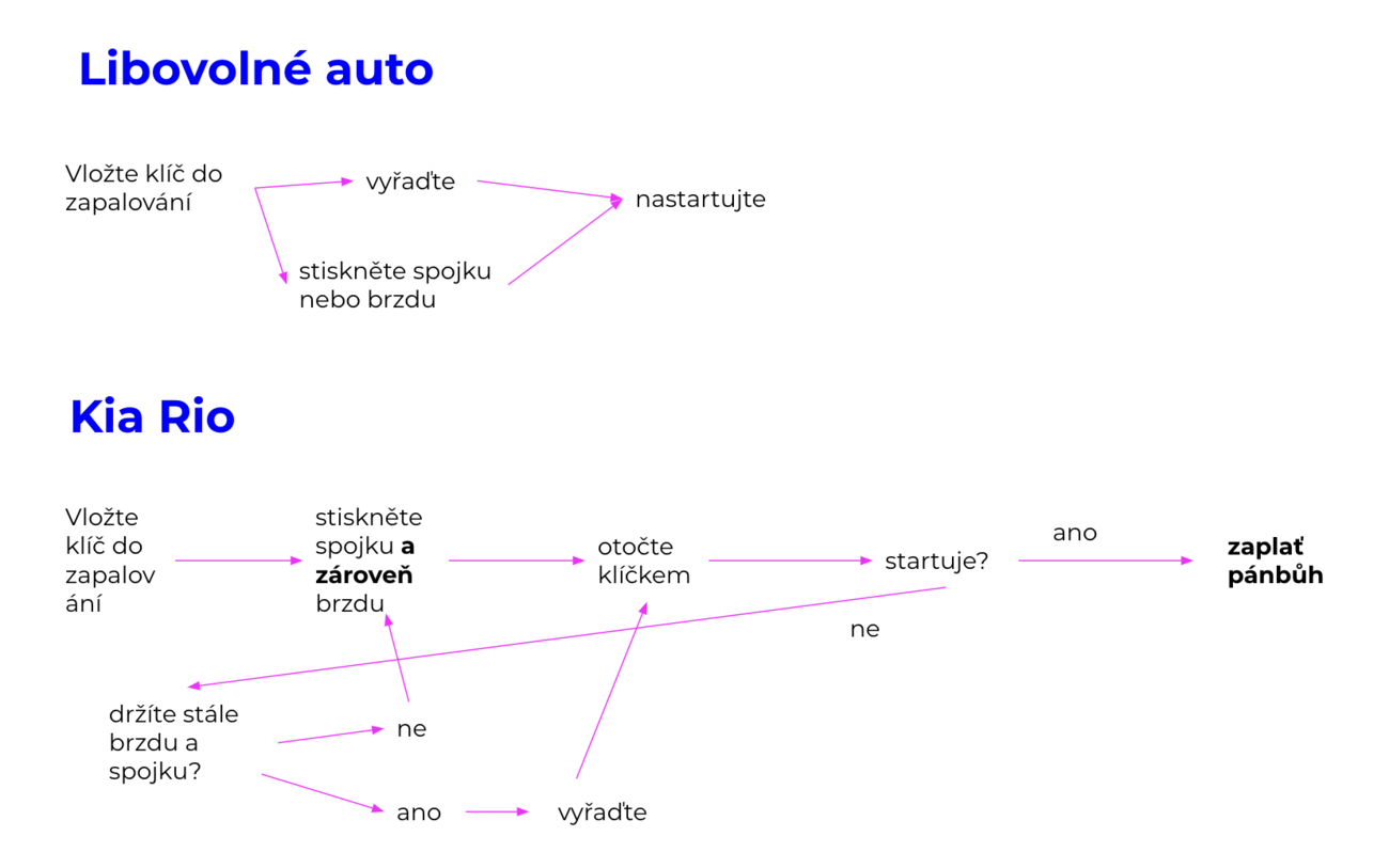 Pojďme si proceduru představit jako proces, kde každá prerekvizita má svůj účel a v případě opomenutí zhatí výsledek. Prostě nenastartuješ, borče. Pro pochopení jsem si schéma dovolil načrtnout.
