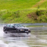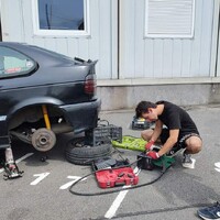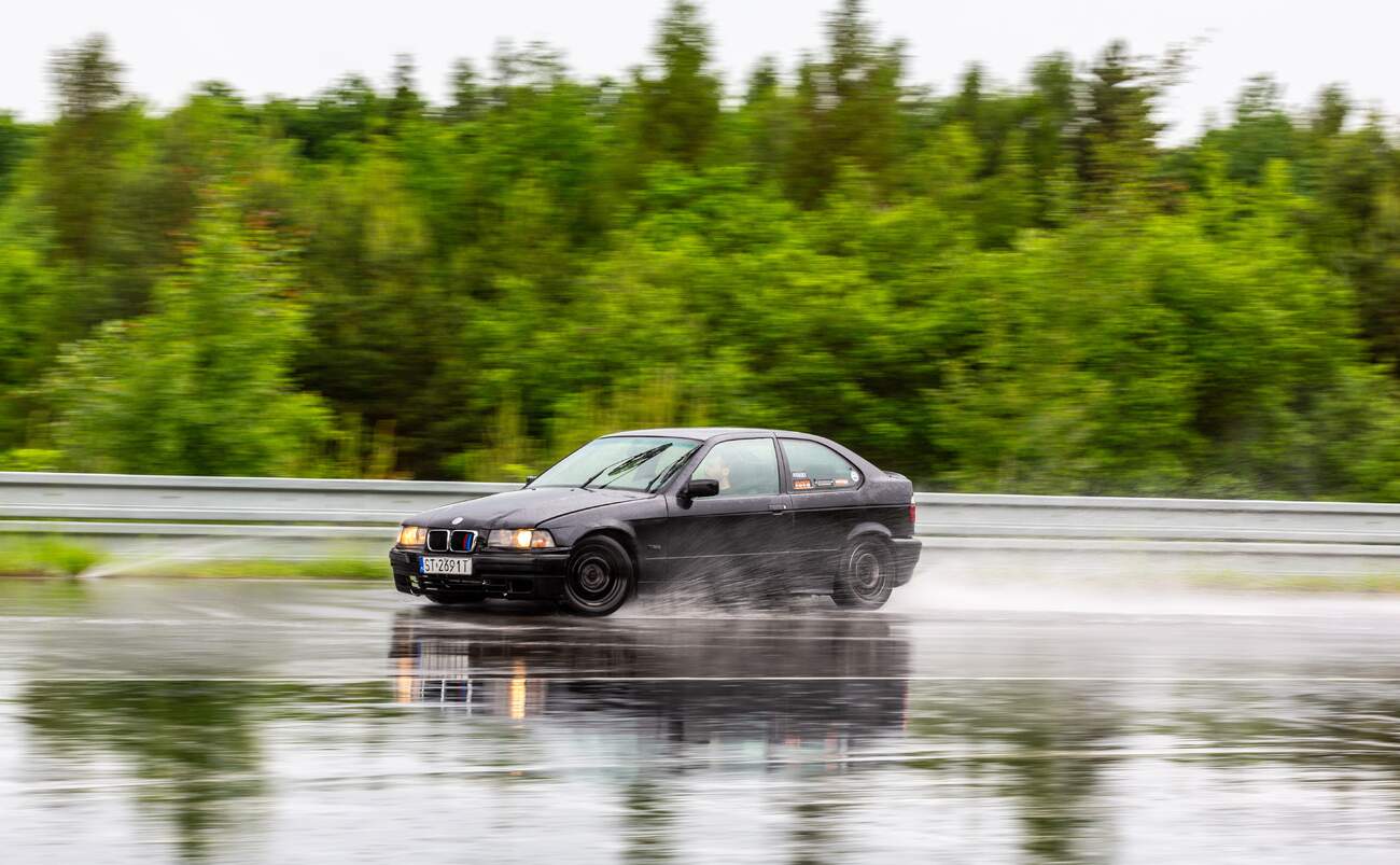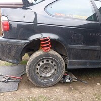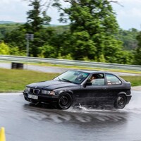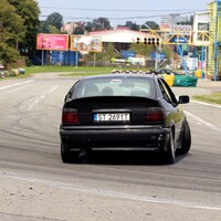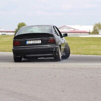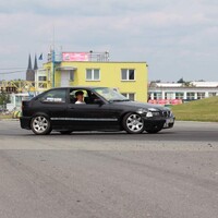 Podvozek někdo vybavil “kvalitními” drifterskými coilovery od slovutné značky TA Technix. Vepředu jsme aplikovali podložky mezi tlumič a těhlici, pro větší negativní odklon. Vzadu jsou pouze pružiny, bez možnost nastavení, asi také od TA. Jenže nejspíš z jiné karosářské verze E36.* Díky ním, byl zadek vysoko, zato tvrdý jak prase a občas poskakující. Po zkrácení pružin o jeden závit flexou je… to úplně stejné, akorát je zadek níže a opět jsme získali pár stupňů negativního odklonu, tentokrát na zadní nápravě. Celkově změna k lepšímu, auto lze o poznání lépe vodit bokem. Preciznější nastavování geometrie je zaprvé zbytečný luxus a zadruhé to stejně moc nejde. Podvozkovou snahu pak završilo přesazení volantu do “rovnější” polohy.