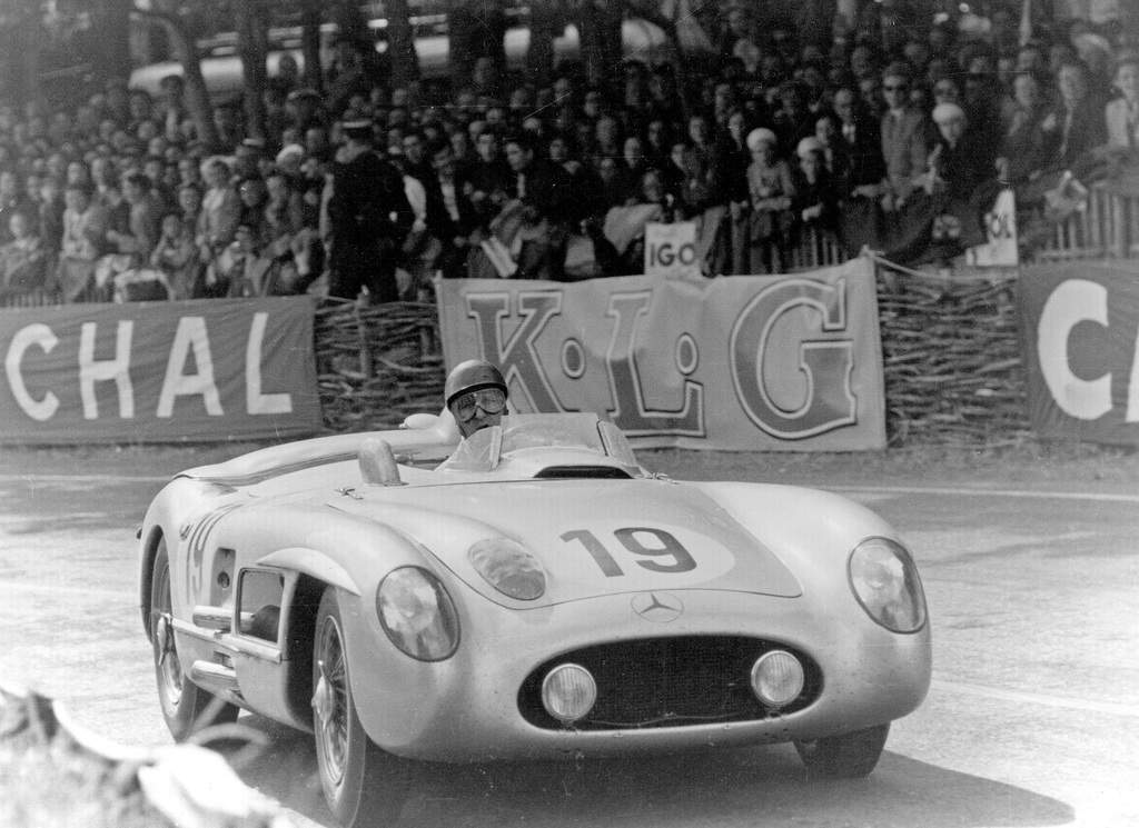 Mercedes byl vyvíjen ve větším stylu a nutno přiznat, v daleko méně skromných podmínkách, které si William Lyons nemohl dovolit. Vůz 300 SLR byl přelomovou, novou konstrukcí. Byl celý postaven na prostorovém rámu a vpředu - téměř uprostřed – usazen řadový osmiválcový závodní motor o výkonu až 310 koní. Používal kupodivu zastaralé a obrovské bubnové brzdy na všech kolech. Vpředu byly umístěny téměř uprostřed auta hned za vodním chladičem. Brzdy se přehřívaly dříve než kotoučové na Jaguarech a proto Mercedes vymyslel nové řešení – vzduchovou brzdu. Řidič mohl tlačítkem zdvihnout velký zadní panel, chtělo by se říci víko kufru, a to sloužilo k stabilizaci a dodatečnému zpomalování před zatáčkami. Stirling Moss, jeden z týmu závodníků zjistil, že lze tou vzduchovou brzdou i stabilizovat auto v průběhu zatáčky, protože vytvářelo přítlak na zadní kola. Mercedes byl v mnohém před Jaguarem. Ten se ale vůbec nevzdával. Silný tým se semkl díky statečnosti pilotů.