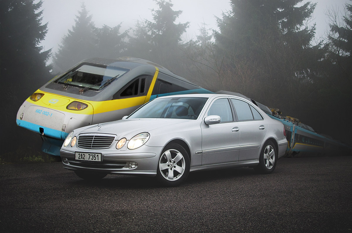 Za další, nikdy nevíte, kdo vlastně sedí u řídícího pultu. S vlakem sice není tak snadné zvorat předjíždění nebo dostat aquaplaning a hupsnout do příkopu, ale fyzická či duševní indispozice řidiče může mít fatální následky. Ne, ne, rozhodně dám přednost sedanu střední třídy, byť už není nejmladší. Zlí jazykové rádi osočují W211 z poruchovosti, dané zejména svéhlavou elektronikou, v crash testech však třetí generace éčka ve své době excelovala a i dnes nabídne slušný standard, pokud jde o aktivní i pasivní bezpečnost.