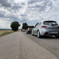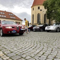 Kromě Lancií se na start staví i vozy jiných značek. Početná je letka automobilů Alfa Romeo, jsou tu Alfy staré i nové, stylové šestiválcové Alfy 75 a 147 GTA doplňuje majestátní model 166 v netradiční kombinaci červeného laku i červeného interiéru a moderní hatchback Giulietta. Nám na startu dělá společnost Maserati Quatroporte s nádherným a skvěle opečovávaným krémovým interiérem.