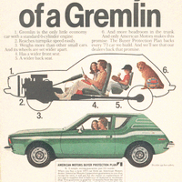 Konkurenční Beetle byl alespoň roztomilý a skutečně levný, zatímco soudobý Ford Pinto připomínal postaršího člověka, který neúspěšně bojuje s nadýmáním. Gremlin tedy nebyl jediným excentrickým kompaktem, přesto všechny ostatní překonával svým nezaměnitelným profilem. Boční linka zádi vypadala, jako by na voze demonstroval kvalitu svých ostří Hattori Hanzō. Podivnosti pokračovaly i v interiéru. Limitovaná edice měla sedačky z modrého, oranžově prošívaného vinylu a na bočnicích se třepotaly nášivky Levi’s, kterými se výrobce snažil nalákat mladé kupce na známou značku jeansů. Petrolheada zaujme spíše možnost objednat si do kapesního vozítka pětilitrový osmiválec, který nechal všechny konkurenty spolehlivě mizet ve zpětném zrcátku. Třešničkou na dortu úspěšného modelu byly prototypy spalující alternativní paliva. Prvním byl elektromobil X-144, druhým modifikace poháněná metanolem a posledním výkřikem techniky byl vůz schopný jízdy na vodík. Do spalovacích komor se dostával přes upravený karburátor a pyšnil se schopností vypouštět z motoru vzduch čistší, než byl před vstupem do sání. A to vše v roce 1972.