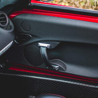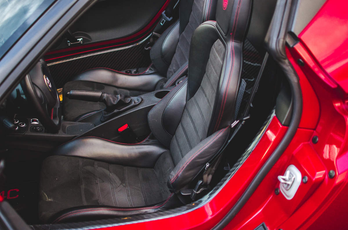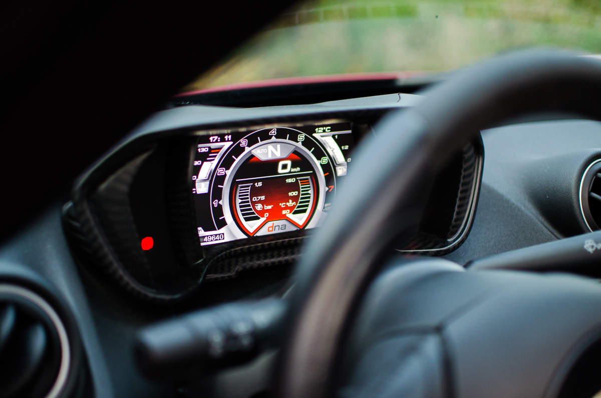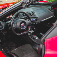 Obejdete širokou záď, rukou přejedete přes širokou křivku blatníku a špičkou prstu jemně zatáhnete za delikátní kliku dveří. Otevřete je a na chvíli se zarazíte při pohledu na široký práh – jak se do toho leze? Nakonec se vám za cenu části své důstojnosti podaří nějak vměstnat dovnitř, srovnáte si volant i sedačku a začnete obhlížet okolí. Zatímco zvnějšku je 4C cvičení v designové smyslnosti, uvnitř máte trochu pocit, že sedíte v závodním autě, které někdo jen zlehka upravil pro silniční provoz. Odhalený karbon, přiznané šrouby, minimum jakéhokoliv komfortu a rádio, jaké si koupíte v obchodě s automobilovými doplňky. Pokud k placatým červeným autům z Itálie přistupujete jako k luxusnímu zboží, může vás to trochu překvapit…