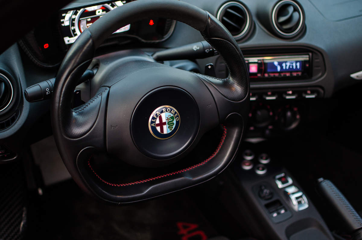 Jistě, jako automobil je Alfa 4C nepoužitelná. Řízení bez posilovače není ani přes strmý převod nějak extrémně těžké, zato však reaguje úplně na vše. Na dálnici se s autem musíte prát, vyjeté koleje tahají za ruce a vůz sebou rád smýká všemi směry. Radiomapa ve voze není vůbec žádná, je tu jen aftermarket rádio. Ale to je vlastně úplně jedno, stejně nad 80 km/h není vůbec slyšet. A nadto – tohle je přeci hračka, ne automobil na cestu s rodinou na chalupu.
