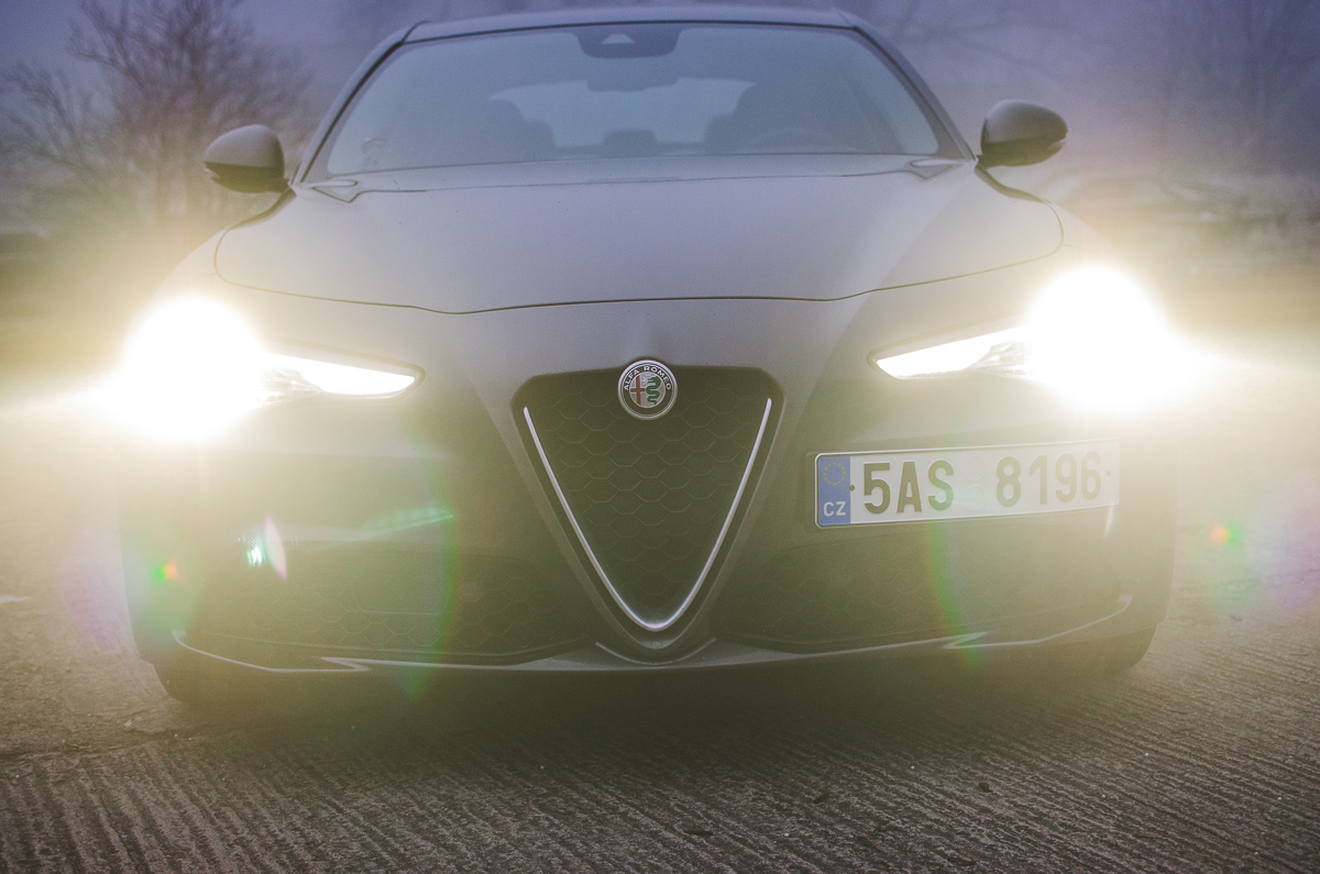 Že je tady něco jinak, je jasné už ve chvíli, kdy Giulii poprvé uvidíte naživo. Na obrázcích ve vás může vyvolat dojem, že je to vlastně takové o něco přitažlivější trojkové BMW, a zvláště v nenápadných barvách, jako je šedá našeho testovacího kusu, může působit až skoro obyčejně. Jenomže Giulia patří k těm autům, na která si z fotografií skutečně nemůžete utvořit názor a jejichž vizuální vyznění navíc velmi závisí na zvoleném laku.