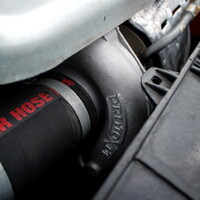 Znalé oko si možná všimlo z obrázku, ale já to rovnou pro všechny prásknu a vyložím karty na stůl. Pestrá aftermarket hadice sání, omotávka na výfukovém potrubí a hlavně přerostlý šnek, který se tlačí ven zpoza krytu a čelní příčky, jistě napovídají, že tohle nebude tovární specifikace… Zase.