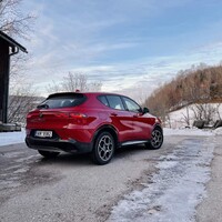 Práce převodovky je ale asi to jediné, co bych Alfě Romeo Tonale skutečně vytkl. Malá Alfa se neztratí ani na okresce, kde překvapí minimálními náklony karoserie. Přitom naladění podvozku sice je tužší, ne však nějak přehnaně tvrdé. Když se k tomu připočte tradičně strmé řízení Alfy, máme před sebou překvapivě schopné auto. Je tu však jeden silný konkurent Tonale a tím je samo Tonale. Verze plug-in hybrid je dle ceníku dražší zhruba o 200.000 korun, při pohledu na ceny skladových vozů je však rozdíl mnohem menší, často až zanedbatelný. Plug-in přitom nabízí 280 koní, pohon všech kol a v neposlední řadě šestistupňový automat, který údajně (osobní zkušenost zatím nemám) netrpí potřebou vytáčet motor do bezvědomí.
