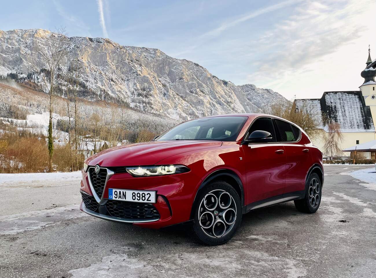 Červené auto na fotkách je tedy Alfa Romeo Tonale 1.5 Turbo e-Hybrid ve výbave Ti a se dvěma prvky příplatkové výbavy – kompletní sadou asistentů a zimním paketem obsahujícím vyhřívané sedačky a volant. Už tradiční je u Alfy Romeo výběr barev. Zatímco šedivá či černá je za příplatek, stylově červenou máte už v ceně. Dobrá tedy, tohle Alfě určitě rozmlouvat nebudu. Testovaná výbava začíná na úrovni jednoho milionu korun, což není málo, ale ani nepřiměřeně hodně. Přecijen – i logo Alfy Romeo má svou hodnotu.