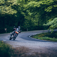 Ve vyšších otáčkách jsou znát vibrace, ale na máloválec bych řekl v normě. Pod displejem se nachází štítek s upozorněním o maximální rychlosti 170km/h při použití M+S (offroad) pneumatik. Rozjede se ještě o deset více, ale je pravda, že legální dálniční tempo, s občasným rychlejším předjetím, jí svědčí asi lépe. Jsem prostě moc vysoko od země a v těchto rychlostech mám raději silničněji orientované stroje, kde mám pořád pocit sucha a bezpečí. Navíc kolonka okamžité spotřeby pak neukazuje nic, na co by se dívalo hezky. Zvukový projev je fajn, i když trochu utlumený, spousta majitelů jistě sáhne po zvučnějším koncovém tlumiči. Mně se ale líbilo, že na čtvrt plynu lze zahájit „stealth mode“ a v pohodě se pak dají na polních cestách míjet cyklisté nebo pejskaři, bez toho, abych se hned dozvěděl, že jsem jednička. Stačí ale pořádně otočit heftem, měkký podvozek se zhoupne a za veselého „BRAAAP“ vás hbitě postrčí vpřed. Dostavuje se nostalgie a vzpomínky na SV.