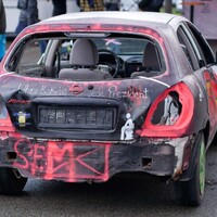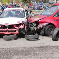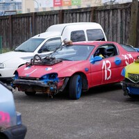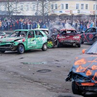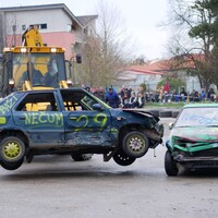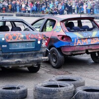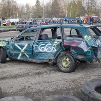 O čem je demolition derby snad popisovat nemusím. Tak jen v krátkosti k průběhu tohoto konkrétního podniku – jely se čtyři rozjížďky, většinou s počtem okolo 6 – 8 aut (záleží, komu se před startem podaří nastartovat). Vítězem je auto, které poslední jede. Následuje baráž složená z těch, kteří prohráli, ale byli ještě schopni auto znovu uvést do pohyblivého stavu. A finále je ze čtyř vítězů jednotlivých rozjížděk + vítěze baráže.