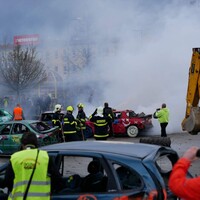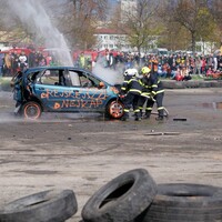 Během odpoledne se také dvakrát prezentují hasiči, z toho jednou plánovaně. Připravena byla ukázka vyproštění zraněného řidiče z Focusu, což se povedlo a živý figurant živým zůstal. Podruhé se ukázali během závodu, kdy potencionálním požárem hrozil jeden zlobivý Scenic. Spojení hadic se klukům úplně nepovedlo a půlka vody stříkala už pár metrů před autem, ale nikdo neskonal bolestivou smrtí, a to je hlavní.