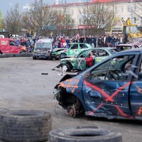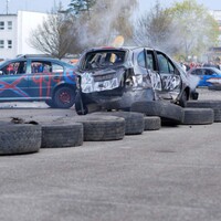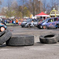 Ve městě, ve kterém by chtěl žít každý (čti České Budějovice), se totiž konal další sebevražedný závod pro asi třicítku automobilů. Ano, myslím tím demolition derby, tentokrát pod názvem Aprílová drcanda. Při ústním informování o události je potřeba správně artikulovat a především druhé slovo opravdu vyslovovat zřetelně, aby pozvaní neměli očekávání, která by asi zůstala nenaplněna. Jak už bývá zvykem, sešlo se na výstavišti (k mému překvapení) opravdu hodně lidí, i když počasí nenabízelo zrovna pozitivní předpoklady. Tyto závody tu mají velkou tradici a dnes je to už po osmnácté, co budou lítat vzduchem kusy plastů, plechů, skla i všeho dalšího. Dokonce by se dalo říct, že mají i mezinárodní přesah! (jakože jsem slyšel někoho v publiku mluvit anglicky).