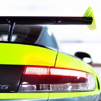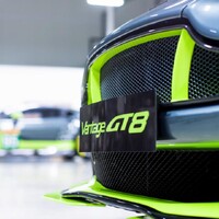 Naštěstí je právě představený Vantage GT8 rozhodně z té druhé kategorie. Vzhled auta vcelku věrně kopíruje Vantage GTE, tedy závodní speciál do vytrvalostní kategorie LM GTE (na které paradoxně není vůbec nic elektrického). Otázkou však je, jestli je to nutně dobře. Ono kopírování závodního speciálu totiž v tomto případě znamená svítivě zelené doplňky karoserie a hlavně mocné přítlačné křídlo v též barvě. Kdysi elegantní GT tak působí jako napadené nějakým tunerským kmenem. Teprve při bližším ohledání vyjde najevo, že mnohé doplňky jsou z karbonu a to včetně znaků na přídi a víku kufru.