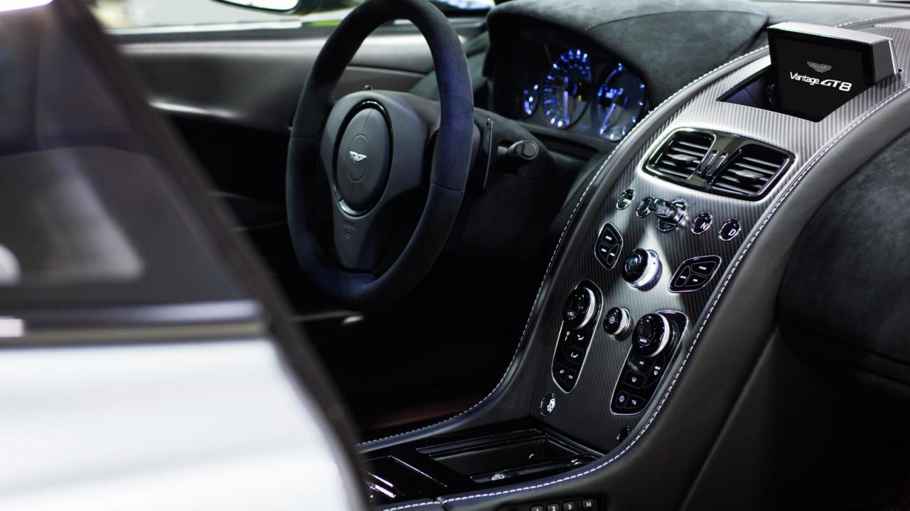 Ovšem jen co nahlédneme do tabulek, jsou všechny designové rozpory rázem odpuštěny. Díky speciální odtučňovací kůře, zhubnul totiž Vantage GT8 zdravých 100 kilogramů hmotnosti. Svůj podíl na tom mají zadní a boční okna z polykarbonátu, menší a lehčí li-ion baterie, karbonová střecha, titanový výfuk a hořčíková kola. Uvnitř vozu ubylo mnoho komfortních prvků a karbonová sedadla jsou nastavitelná pěkně postaru ručně, nikoliv elektricky. Ani přesto tu však nechybí základ v podobě rozumného, 160 wattů výkonného sound-systému a klimatizace.