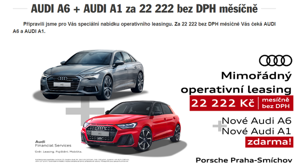 https://porsche-smichov.cz/akce-a-novinky/2019/5/audi-a6-audi-a1-za-22-222-bez-dph-m-sicn/