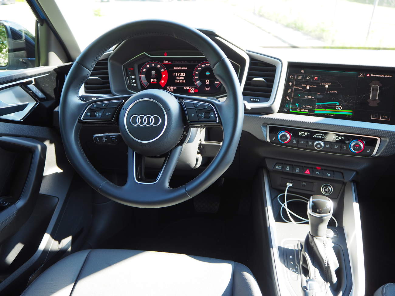V interiéru je na některých prvcích znát, že se nacházíme ve voze prémiové značky. Dominují tu dva veliké displeje, jeden v místě přístrojové desky, druhý o kousek vedle vpravo natočený směrem k řidiči. Ačkoli jsem v této oblasti docela pes, nemohu zde Audi mnoho vytknout. Zobrazení je přehledné, displeje mají skvělý obraz a ovládání je velmi intuitivní. Snad jen možnosti zobrazení palubních přístrojů by mohly být širší. Neříkám, že by to ocenila většina kupujících, naopak, málokdo by si této možnosti vůbec všiml, ale třeba Peugeot ve svém i-Cockpitu dokazuje, že co se týče digitálních přístrojovek, je prostor pro hrátky se zobrazením mnohem širší, než jen obligátní velké budíky, nebo malé budíky s mapou uprostřed.