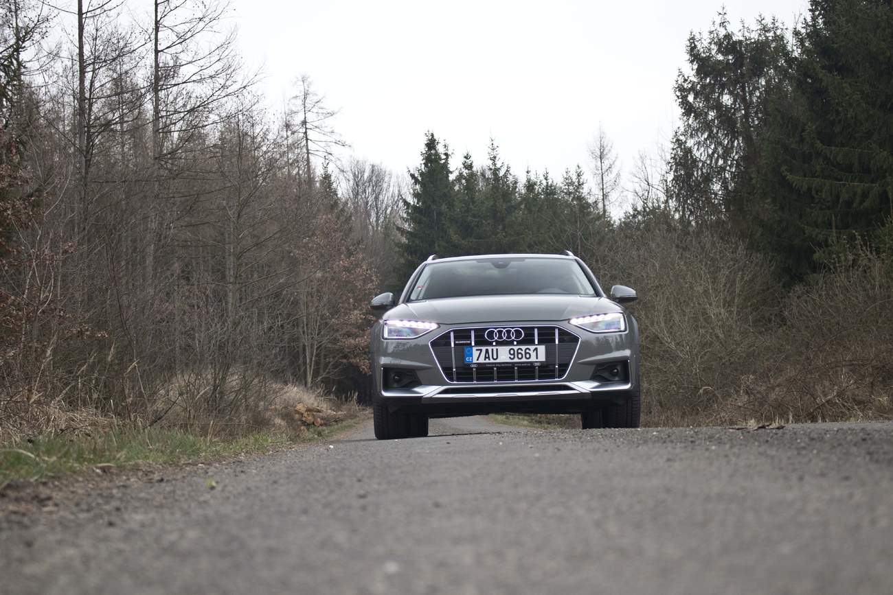 Rychlé projíždění zatáček samozřejmě není jeho dominantní disciplínou, spíš příjemným vedlejším efektem. Co na cestování oceníte nejvíc, je komfort. Ve městě, na okresce a zejména na dálnici. Všechny tyhle allroady, alltracky, crosscountry a scouty se sice tváří dobrodružně, ale jejich účelem není dobrodružství vytvářet, spíš vás k němu dovézt. Světlá výška je sice větší o 23 mm a dalších 12 mm získáte se sedmnáctipalcovými koly, ale auto na první pohled není žádný offroad. Takže na sjezdovku či horskou chatu, k moři nebo do kempu v lese, každému dle chuti. A právě tyhle dlouhé cesty budete v áčtyřce milovat. Podvozek vytváří dojem, že sedíte v něčem minimálně o číslo větším, tak ladně se nese přes výmoly, kanály i retardéry. Motor téměř neslyšíte a i při hustém provozu můžete za volantem chytat lelky, protože adaptivní tempomat funguje perfektně.