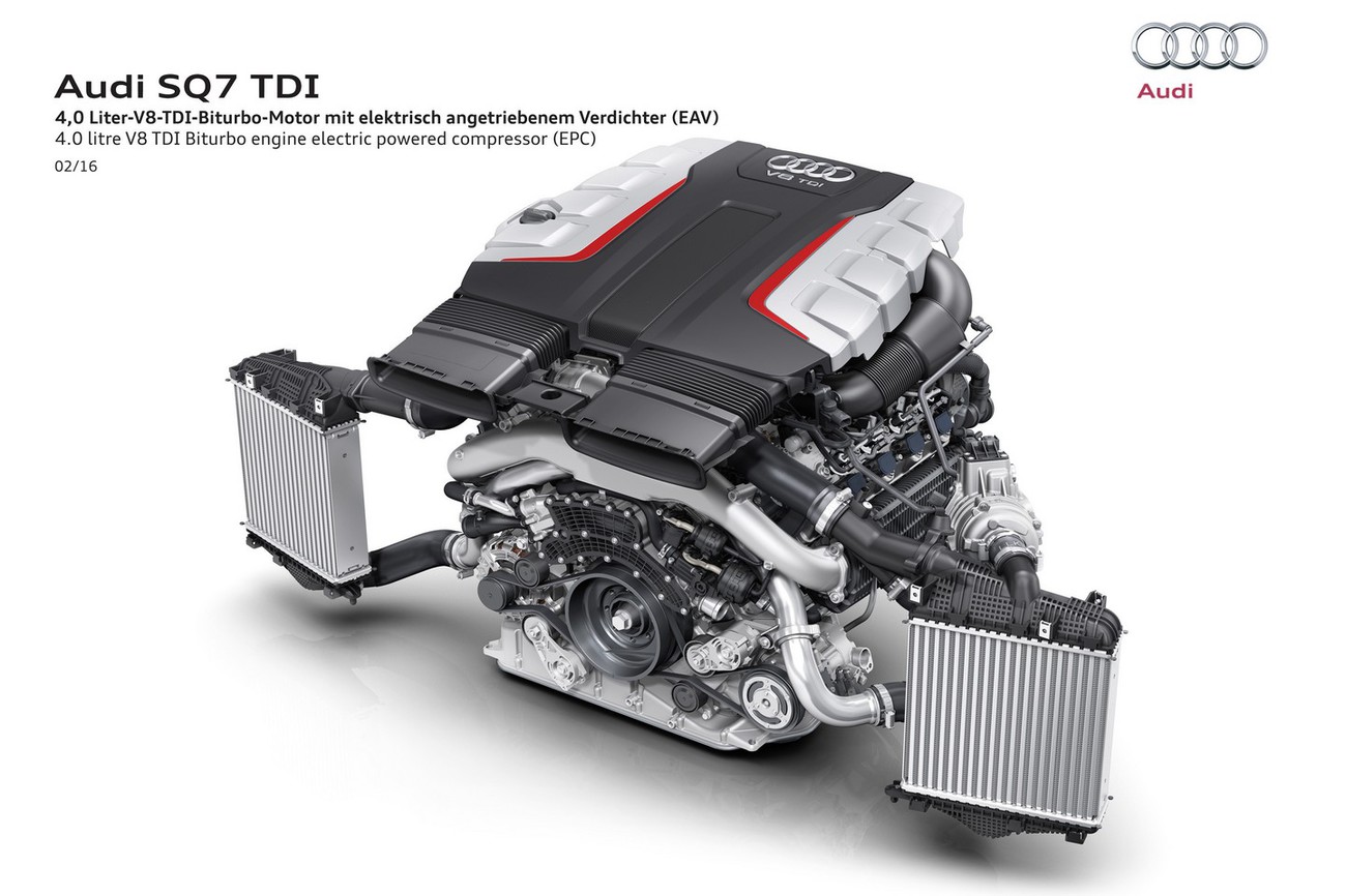 Pod kapotou mastodontu se čtyřmi kruhy na přídi, ukrývá se zbrusu nový naftový osmiválec o objemu čtyř litrů, jehož doménou je premiérové použití elektronického turbodmychadla. Technologie se zkratkou EPC (Electric Powered Compressor) má v autě vlastní elektrický okruh o napětí 48 voltů, ke kterému náleží i v kufru umístěná druhá baterie, nabíjená DC/DC zesilovačem z klasického palubního napětí 12 voltů. Turbo je potom roztáčeno elektromotorem o síle 7 kW.