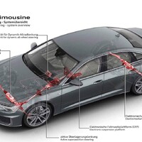 Zpět o všem k přízemnějším a mechaničtějším komponentům. Nová A6 jízdně těží z přenastaveného podvozku s nižšími neodpruženými hmotami, jenž poskytuje komfort a jízdní vlastnosti kompaktnějšího auta. Řízení je přímější, ovšem lze si nechat dodat i aktivní řízení s variabilním převodem. Zásadní pro manévrovatelnost je i systém natáčení zadních kol. Ta se umí otáčet buď s těmi předními, nebo proti nim, v závislosti na rychlosti a dalších parametrech.