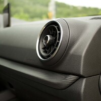 V kabině je už divočiny o něco méně, tady se sázelo na kvalitu a ‚prémiovou‘ atmosféru, na níž si fanoušci značky zakládají. Interiér se v mnohém neliší od modelu A3. Nechybí čtyři kulatá foukátka ventilace, kulatý ovladač radiomapy na středové konzoli a kulatá hlavice řadicí páky připomínající tenisák. Filozovii narušuje jen nekulatý volant, který má v paketu S-line useknutý spodek po sportovním způsobu.