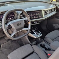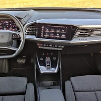 Nebudu zastírat, že přesun do interiéru pro mě byl menším zklamáním. Audi je známo tím, že na interiérech svých vozů si dává extrémně záležet. Bývají obvykle velmi kvalitní a působí opravdu hodnotně. Prakticky v jakémkoli voze se čtyřmi kruhy uvnitř okamžitě poznáte, za co jste utratili své peníze. Bohužel, z Q4 takový pocit úplně nemám. Ne že by vnitřek vozu byl nějak zásadně špatný, to vůbec. Jen u něj nevidím žádnou přidanou hodnotu. Už jen pohled na střed hranatého volantu ve mně vyvolává mírné rozpaky. Dodnes si pamatuji, že u mé staré A6 bylo logo vyvedeno pěkně v chromu, v zimě to studilo, v létě trochu pálilo. Tady je však pouze jakási plastová nálepka, které postrádá kouzlo preciznosti. Já vím, je to blbost, nepodstatný detail. Ale v detailech je přece krása, ne? Celková architektura palubní desky je v souladu s ostatními modely značky. Hlavním motivem je výrazné žebrování táhnoucí se napříč celou šířkou vnitřku. Celkové vzezření je konzervativní, ale to je spíše plus. Vadilo mi větší využití tvrdých plastů v dolní části interiéru. To, co sice na první pohled není vidět, ale přicházíme s tím do kontaktu prostřednictvím nohou a rukou. Dílenské zpracování je na nejvyšší úrovni, nic nevrže ani neskřípe, ale pocit prémiovějšího provedení se prostě nedostavuje. Skoro to vypadá, jako kdyby chtěli v Ingolstadtu šetřit, a to je překvapení. U audi tohle nebývá zvykem. Stejně tak bych v autě za téměř dva miliony hledal elektrické nastavování sedaček nebo o něco hodnotnější potahy (v tomto případě látka Routine), ale to je o osobních preferencích. Samozřejmě si za to všechno můžete připlatit, pokud vám vyhovuje něco jiného. Nepotěšil mě ani fakt, že se v Audi neobtěžovali s integrací předního kufru, alias frunku. Bylo by to ideální místo, kam schovat kabely, aby se nemusely povalovat v mezipodlaze kufru. Nicméně pravdou je, že mít kabely vpředu, asi by vás rozčiloval prut držící kapotu. Vážně tam nešlo nacpat plynokapalinové vzpěry? U prémiového auta bych to asi trochu očekával.