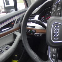 Nad bzučícími masařkami přivřete oko, jakmile se vůz dá do pohybu. Kombinace motoru, převodovky a podvozku je jedním slovem skvělá. Třílitrový šestiválec pod kapotou skoro neslyšíte, jen ve vyšší rychlosti si brouká jako dobře naladěná basa, plynule, hladce a melodicky. Přestože se nová Q7 zbavila více než tří metráků, pořád váží dvě tuny, při jízdě se však chová jako mnohem lehčí auto. Do města se hodí o dost víc než těžkopádný předchůdce, protože umí vystřelit a využít i malou mezeru pro přibočení. Automat je přesně takový, jaký má automat být – prostě o něm nevíte (nelíbí se mi jen řadicí páka, protože je obrovská, tuhá a plná zbytečných tlačítek). A podvozek? Nadýchaný obláček. Pohodlí jednoznačně vítězí nad ‚sportovností‘, proto možná překvapí, že se velké SUV ochotně skládá do zatáček. Ve starém modelu jste si sem tam mohli připadat, že vezete kombajn na pole. Na okreskách se to se zatnutými zuby dalo vydržet, ale manévrovat kupříkladu v podzemních garážích bylo vyloženě za trest. Nové Audi má systém řízení všech kol, který natočením zadních kol při vyšších rychlostech pomáhá jisté stopě v zatáčkách a při pomalé jízdě zmenšuje poloměr otáčení. Tohle se docela povedlo.